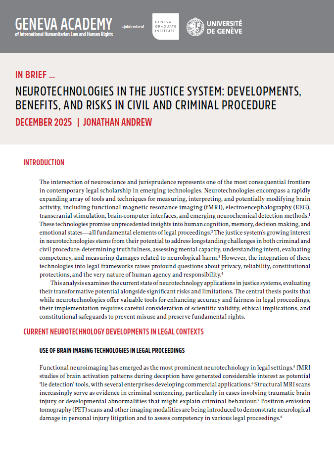 Neurotechnologies in the Justice System: Developments, Benefits, and Risks in Civil and Criminal Procedure
